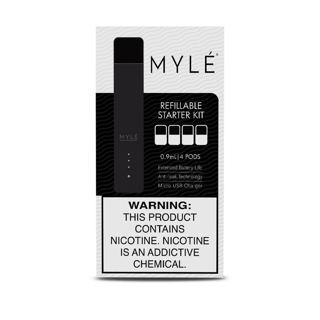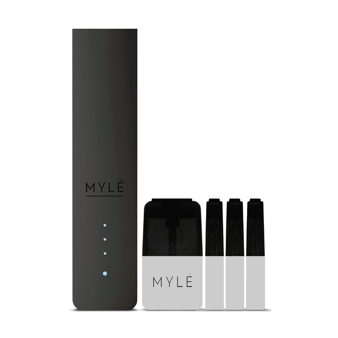 Find everything you need to enjoy a clean in Black, smooth vaping experience in this Mylé Starter Kit that includes one full-sized sleek rechargeable device and four empty pods. Use the included micro USB charger to power your device and the user manual to answer any questions on your mind. Taste the premium essence that Mylé has developed specifically for nicotine lovers who say no to traditional cigarettes, and set yourself up with a quick and easy kit that leaves room to try new flavors anytime you like.